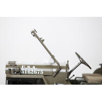 Performance was not overlooked when creating the MB Scaler: a modern crawler chassis was chosen to retain the body-on-frame and solid axle design of the full scale MB. Oil filled shocks replace leaf springs to allow for axle articulation. Narrow wheels feature specially formulated high-grip tires with period-correct tread to provide maximum traction while retaining the scale look of the MB.