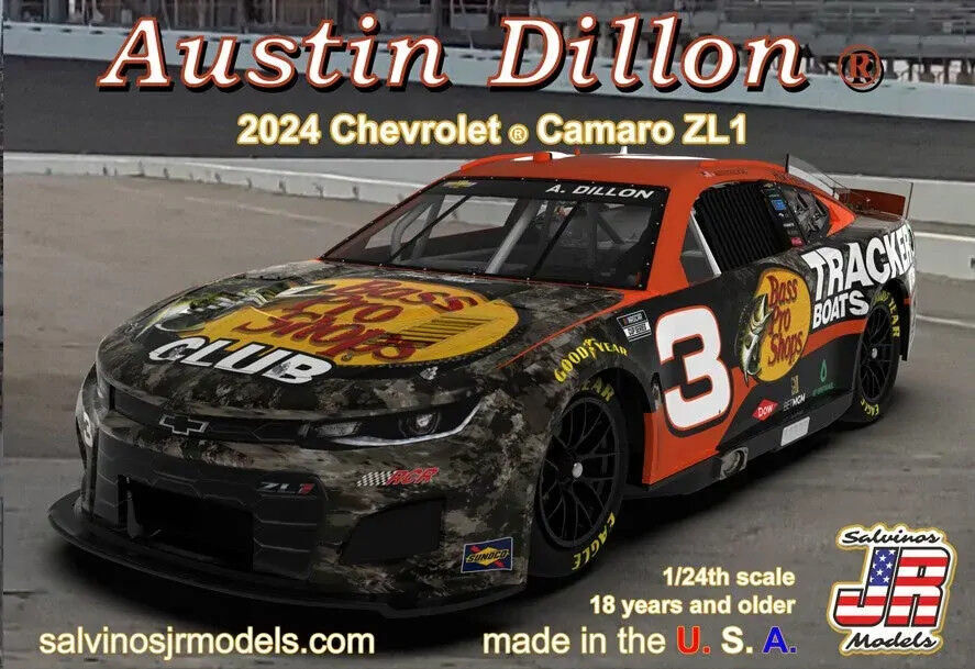 Write A ReviewSalvinos J R 1/24 Richard Childress Racing 2024 Austin Dillon Camaro "Bass Pro Shops" Plastic Model