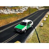 The iconic Volkswagen Golf MK1 takes on an official role in this classic Polizei edition. Sporting the distinctive white and green livery, this model pays homage to the cars that patrolled the streets of Germany in the 1970s and 80s. Renowned for its reliability and agility, the Golf MK1 was a trusted partner for German law enforcement, handling everything from urban patrols to high-speed pursuits with ease.