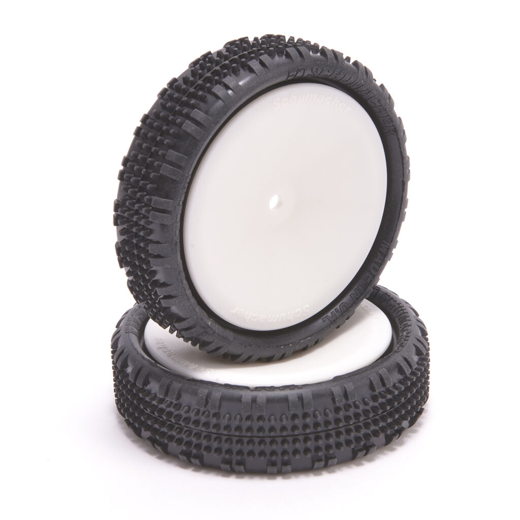 the schumacher fusion slim 2wd front tyre is developed from the popular low profile cut stagger.