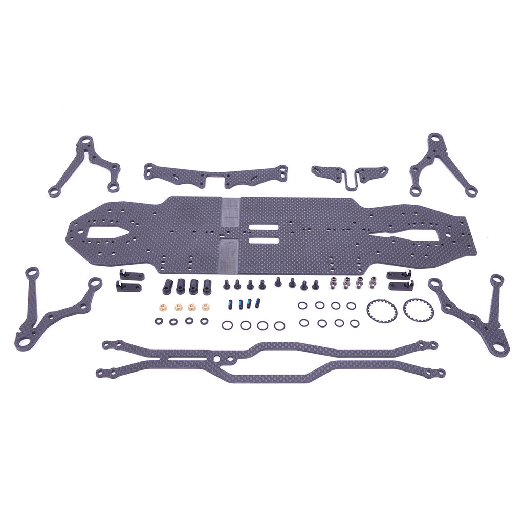 The conversion kit includes a new chassis, top decks, wishbones, shock towers, and required hardware.