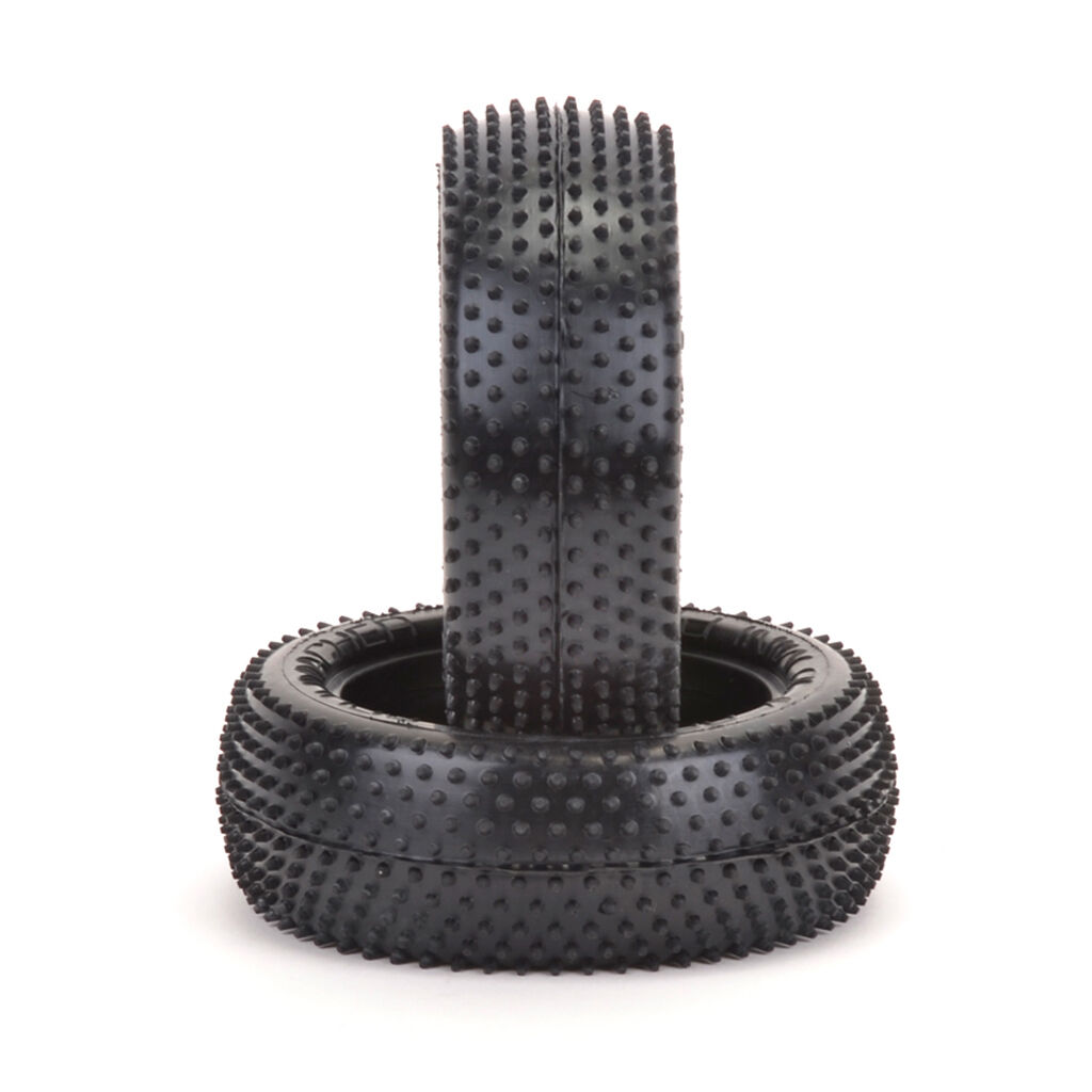 The Schumacher Mini Pin is a hugely popular tyre for mainly indoor racing, carpet, multi-surface and occasionally dry astroturf where maximum traction is required. The most popular compound is Yellow, but also available in the harder wearing blue and softer Silver compounds.