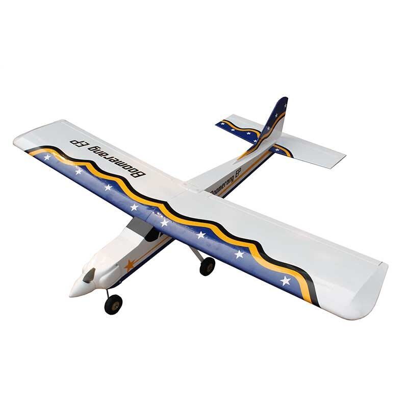 The Boomerang EP is a semi-scale plane, which is easy to fly and quick to construct. The airframe is conventionally built using balsa. Plywood is also used, making it stronger, but the design still allows the plane to be kept light. The majority of the model construction has been completed for you. The motor mount has also been fitted with the hinges pre-installed. Flying the BOOMERANG EP is loads of fun.