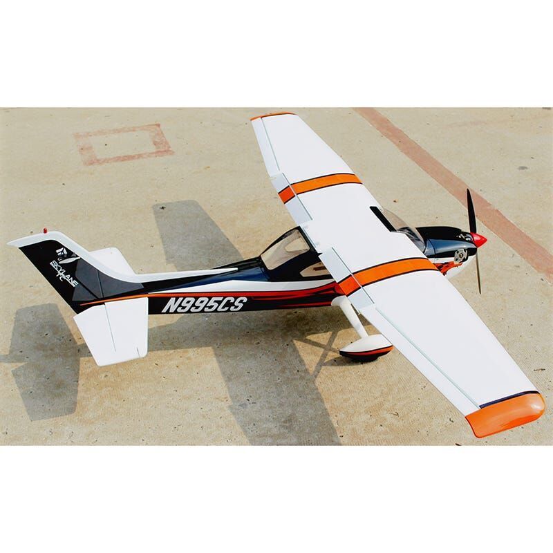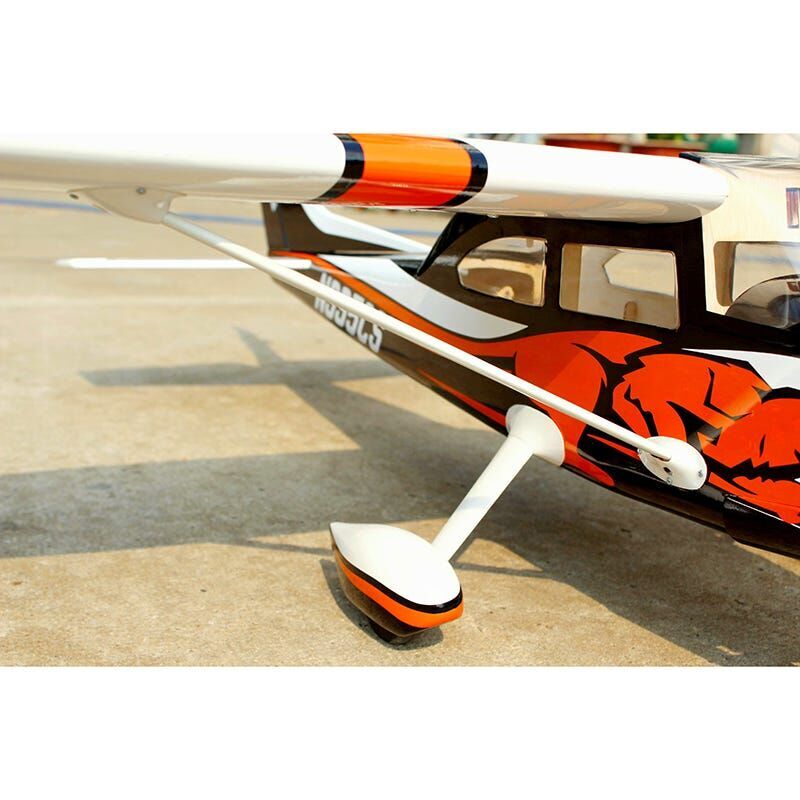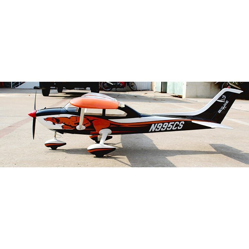 It is a semi-scale design that is easy to fly and quick to assemble. Its eye-catching scale colour scheme accurately reproduces the first Cessna Turbo Skylane 182 to sell at the highly attended and watched Barrett Jackson Auction. The balsa and plywood airframe features balsa sheeting where appropriate to make it more robust than the average ARF, yet the design allows it to be kept light. Its scale oleo nose landing gear and aluminium main painted landing gear provide outstanding looks and great control so you can look good on the ground and in the air.