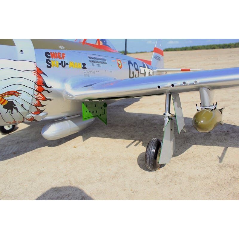 The Seagull Models P-47 Chief Ski-U-Mah II 35cc ARF RC plane combines stunning scale realism with superb flying performance. The accurate scale outline is complemented by the two-piece wing, fully sheeted in balsa and covered in high-quality genuine film. This RC warbird includes drop tanks, rockets, pylons, and LED navigation lights, making it a true showstopper both in the air and on the ground. The 1.5-inch CNC-machined aluminium spinner hub and factory-painted fibreglass cowl with a detailed dummy radial engine add to its scale appearance. You'll appreciate the convenience of electric retractable landing gear, complete with functional landing gear doors at the front and rear. Plus, the scale flaps make landing a breeze, ensuring smoother, slower approaches that take the fear out of tricky landings.