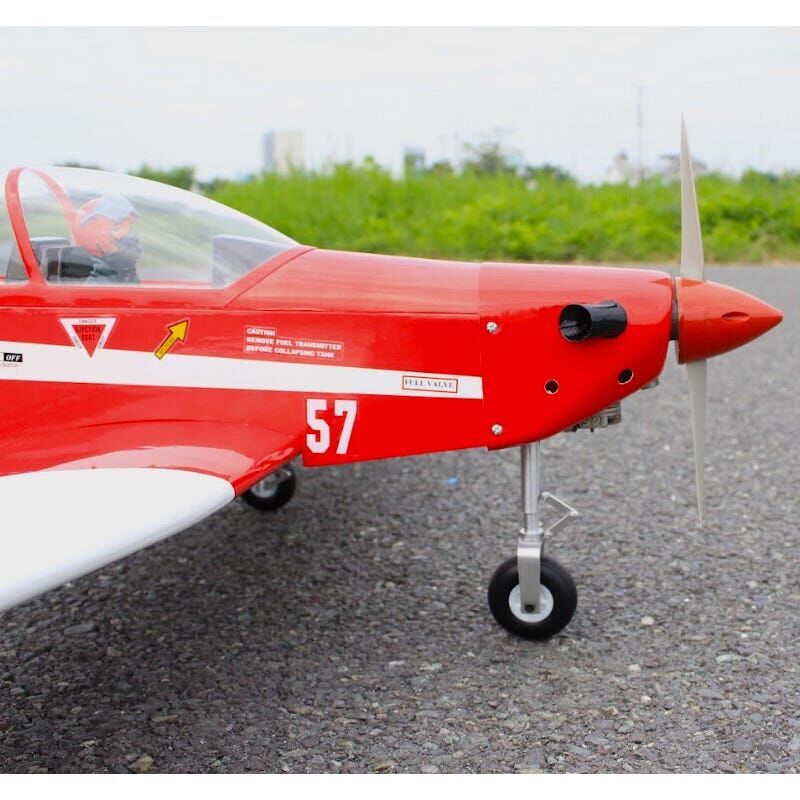 The PC-9 was designed with the intermediate/advanced sport flyer in mind. It is a low-wing scale aeroplane which is easy to fly and quick to assemble. It's airframe is conventionally built using balsa, plywood and veneer to make it stronger than the average ARTF, yet the design allows the aeroplane to be kept light. You will find that most of the work has been done for you already. The pushrods are pre-made to the correct lengths, the motor mount has been fitted and the hinges are pre-installed and pinned for security. Flying the PC-9 is simply a joy.