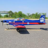The PC-9 was designed with the intermediate/advanced sport flyer in mind. It is a low-wing scale aeroplane which is easy to fly and quick to assemble. It's airframe is conventionally built using balsa, plywood and veneer to make it stronger than the average ARTF, yet the design allows the aeroplane to be kept light. You will find that most of the work has been done for you already. The pushrods are pre-made to the correct lengths, the motor mount has been fitted and the hinges are pre-installed and pinned for security. Flying the PC-9 is simply a joy.