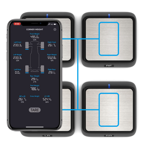 The App simulates practical scenarios to b intuitive and straightforward. The diagonal wheels are highlighted contrastingly in orange to indicate the selection. This is exactly the RC hobbyists' paint point when balancing and distributing the weight! The weight and protocol data are transmitted to the mobile App in real-time via Bluetooth. The APP can set each scale by coordinate and save the real-time weight at the respective corner. The total diagonal weight is automatically calculated on the go!