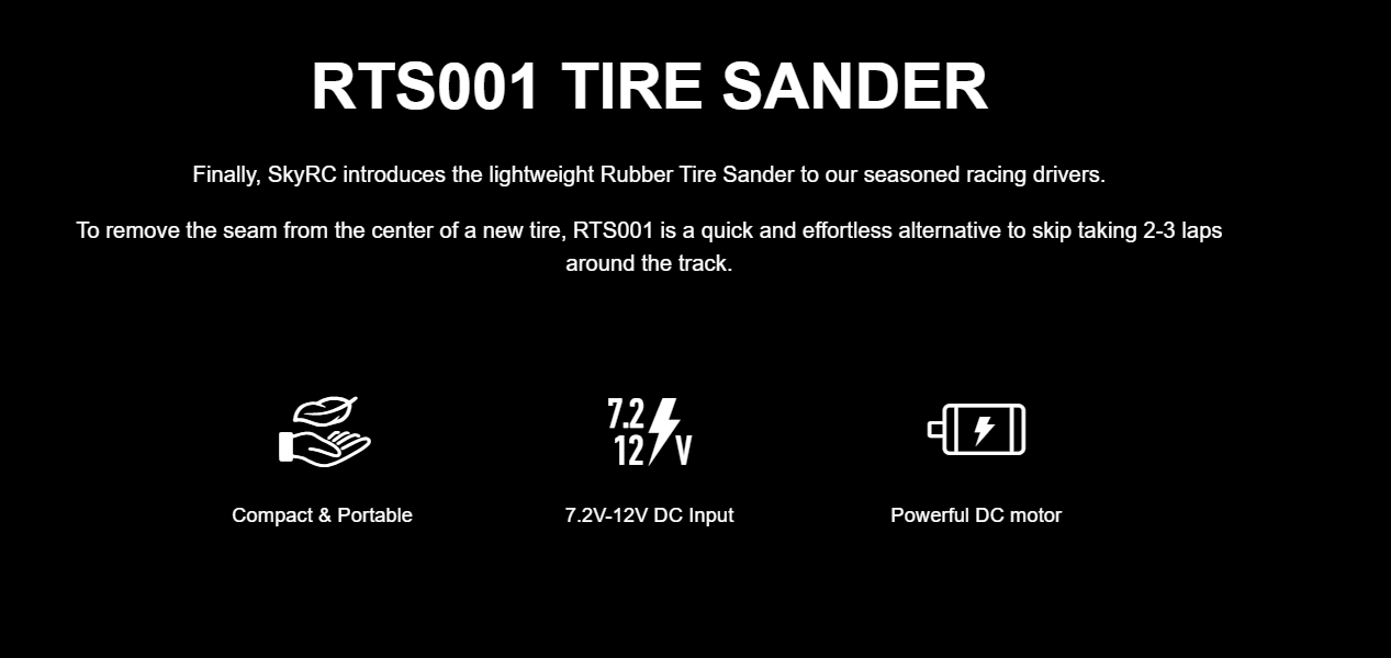 Skyrc introduces the lightweight rubber tire sander to our seasoned racing drivers.