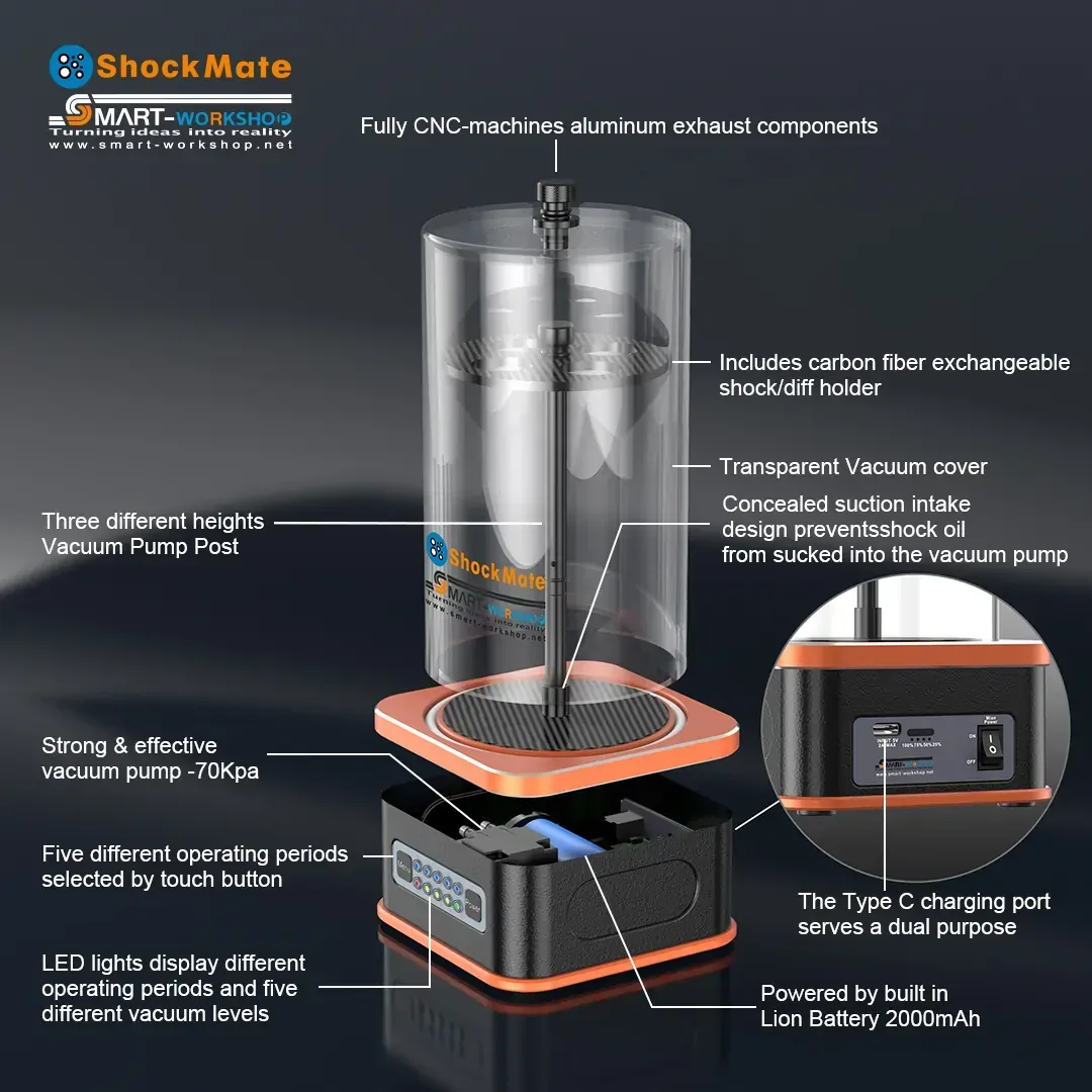 Shock mate includes a strong and; effective vacuum pump -70kpa that is powered by built in lion battery 2000mah or dc 5v type c power supply