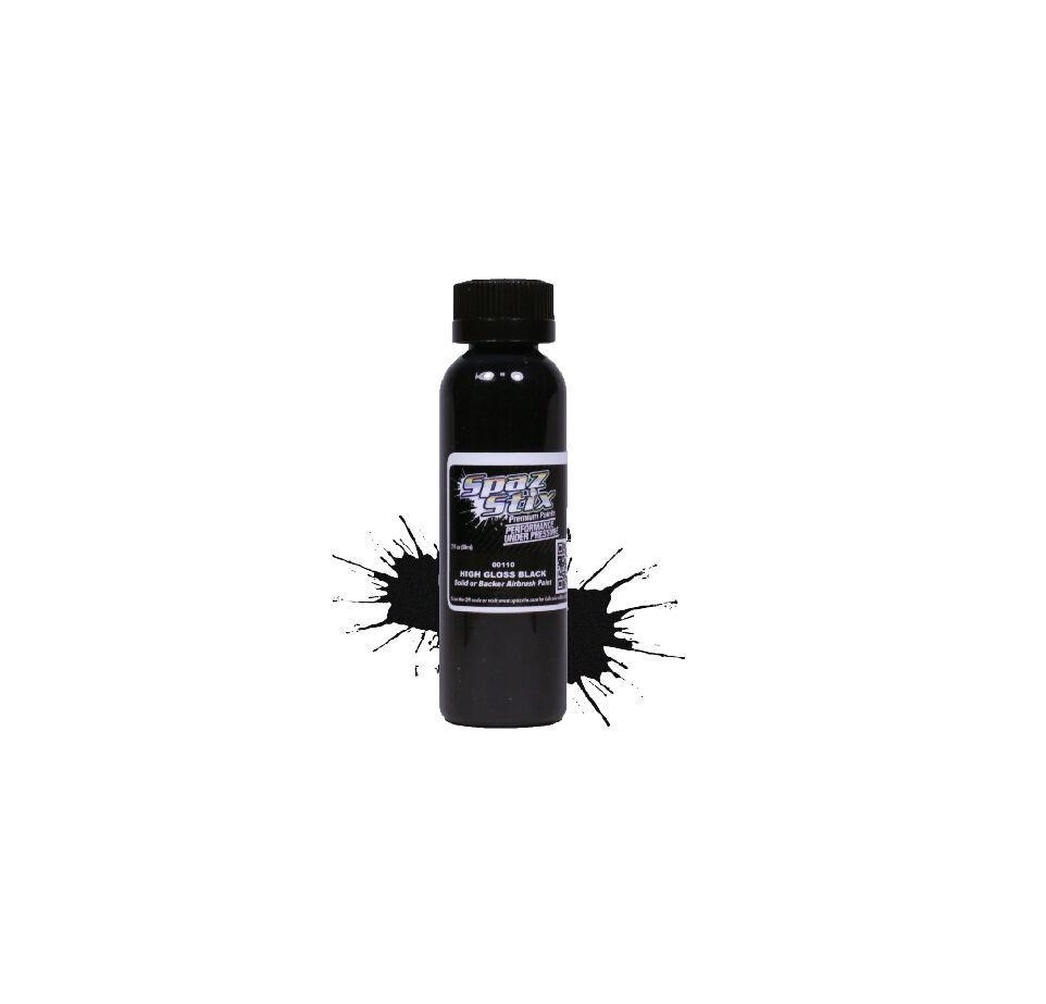 Spaz Stix High Gloss Black is an opaque (solid) color that can be used as a primary color in your paint scheme, and is specifically formulated to perform perfectly as the required backer for the Spaz Stix "Color Change" line of paints.