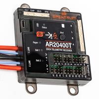 The Spektrum AR20400T PowerSafe receiver is a feature-packed 20 channel receiver with integrated full-range telemetry. Spektrum PowerSafe receivers are designed for models using numerous servos and accessories that draw excess current such as those found on giant-scale airplanes and jet models. They feature a robust power bus designed to manage high-current loads, as well as dual 13AWG battery input leads with IC3 connectors for use with larger battery packs. This makes it possible to support high-current systems straight through the receiver without the need for a separate power distribution system.