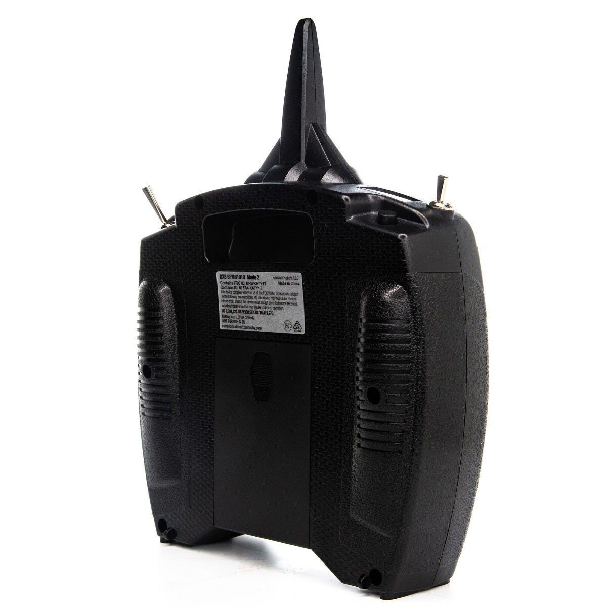 Weight distribution, switch placement and trim switch positions have been optimized for comfort and fatigue-free control. An integrated handle and neck strap hook are included for easy carrying. Ports are provided in the rear battery compartment for using optional wireless trainer and PC programming capabilities. The SRXL2 DSMX Remote Receiver (available separately) is required for wireless trainer support. Registration and firmware updating are possible from your PC by downloading the software from the DXS product page at SpektrumRC.com and using the USB Programming Cable (available separately).