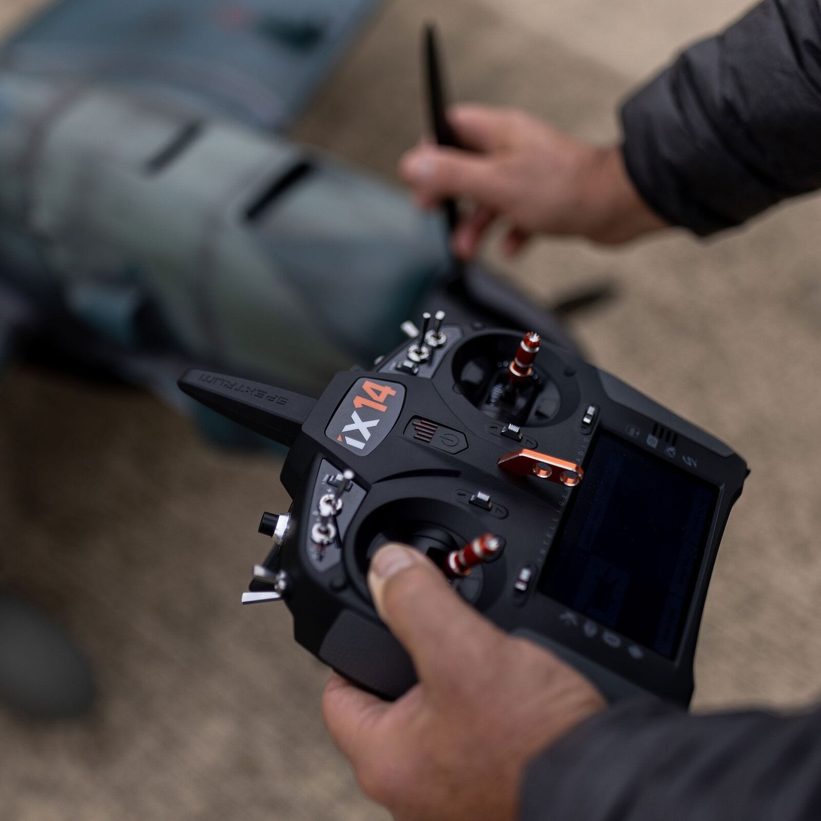 The iX14 now joins the series as the perfect intelligent transmitter for intermediate to advanced level pilots who fly mid- to high-end performance RC aircraft, including EDF jets and giant-scale turbine jets. It offers 14 channels and includes many of the latest Spektrum advances in connectivity, programmability, and ergonomics.