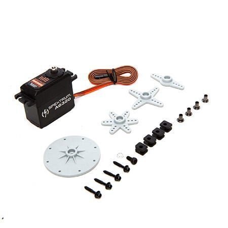 Spektrum high-voltage, brushless servos deliver dependable power and digital precision with amazing efficiency. Finely tuned electronics and software combine with powerful brushless motor technology to offer ultra-smooth performance more efficiently than servos with conventional motors. The aluminum center section allows any heat within the servo to dissipate rapidly while high-strength metal gears and high-impact polymer case components deliver a precision instrument that s hassle-free.