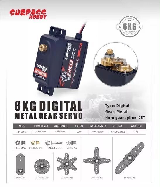 Enquire about " Surpass 6KG S0600M Metal gear servo"