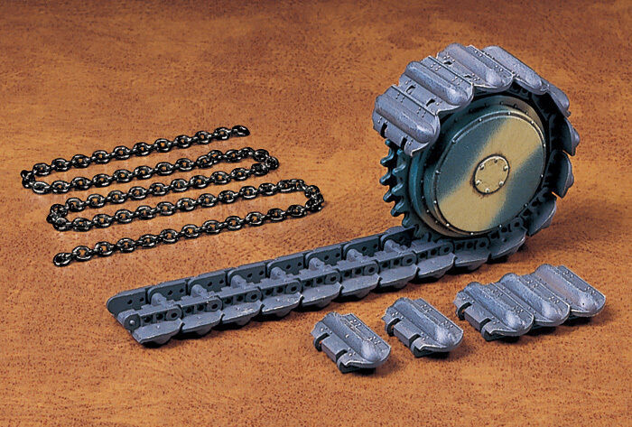 Moving link type assembly tracks make for realism and easy assembly. Links come pre-removed from sprues. The model kit also includes a metal parts to realistically recreate tow chain.