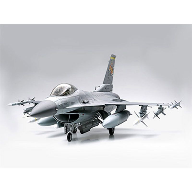 The F-16 Fighting Falcon model maintains the ease of assembly featured by all of the models in our 1/32 Scale Aircraft Series, and boasts the high level of detail and accuracy for which Tamiya is known around the world. This model has given our designers the opportunity to incorporate a number of modeling ideas and innovations that would not have been possible on a smaller 1/48 or 1/72 scale.