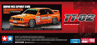 The tamiya tt-02 bmw m3 sport evo pays tribute to the iconic 1992 dtm j¤germeister racer, one of the most legendary touring cars of all time. This 1/10 scale kit faithfully recreates the aggressive e30 sport evolution, featuring widened fenders, an adjustable rear wing, and the unmistakable bright orange j¤germeister livery