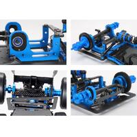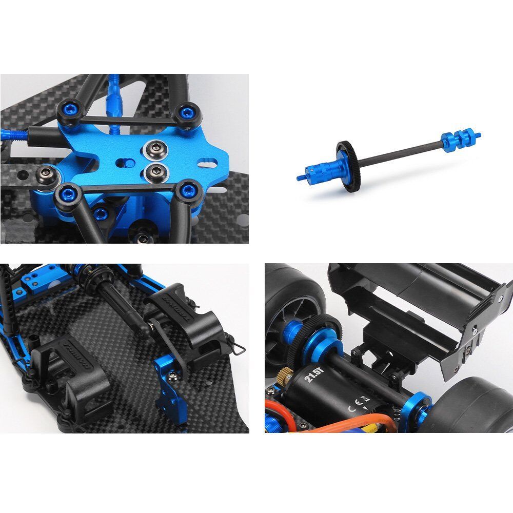 Features a choice of 4 types of steering linkage adjustments over a range of about 1.8mm length by changing Ackerman plate position to keep direct steering. - Rear differential unit: