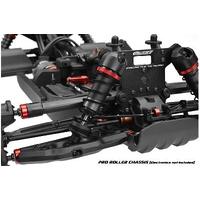 Three important components of the Kagama's design reign supreme: precision-engineered control arms, innovative chassis reinforcements and durable, precise shock absorbers. The suspension arms have been completely redesigned, prioritizing durability and precision without adding additional weight. These elements are complemented by anodized aluminum hinge pins and pivot ball retainers that provide unrivaled strength, reinforcing crucial suspension elements against the demands of extreme bashing. The Kagama features a new 4x4 mounting system for the chassis reinforcements, which improves both durability and performance by isolating the bulkheads from bumps and impacts. Additionally, the vehicle is equipped with heavy-duty 16mm shock absorbers with threaded aluminum bodies and hard springs, ensuring the reliability and handling required for large-scale bashing. With heavy-duty 4mm pistons, these shocks can handle the thicker fluids needed to properly cushion terrain or obstacles, while oversized shock lower ends improve overall durability. See the seamless integration of these elements in action, delivering controlled precision even in the most demanding conditions.