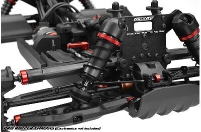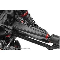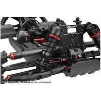 Three important components of the Kagama's design reign supreme: precision-engineered control arms, innovative chassis reinforcements and durable, precise shock absorbers. The suspension arms have been completely redesigned, prioritizing durability and precision without adding additional weight. These elements are complemented by anodized aluminum hinge pins and pivot ball retainers that provide unrivaled strength, reinforcing crucial suspension elements against the demands of extreme bashing. The Kagama features a new 4x4 mounting system for the chassis reinforcements, which improves both durability and performance by isolating the bulkheads from bumps and impacts. Additionally, the vehicle is equipped with heavy-duty 16mm shock absorbers with threaded aluminum bodies and hard springs, ensuring the reliability and handling required for large-scale bashing. With heavy-duty 4mm pistons, these shocks can handle the thicker fluids needed to properly cushion terrain or obstacles, while oversized shock lower ends improve overall durability. See the seamless integration of these elements in action, delivering controlled precision even in the most demanding conditions.