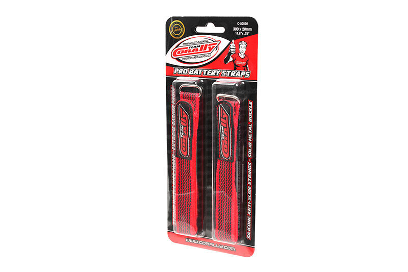 Write A ReviewTeam Corally - Pro Battery Straps - 300x20mm - Metal Buckle - Silicone Anti-Slip Strings - Red - 2 p