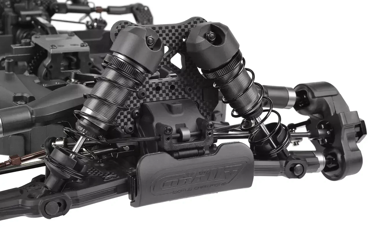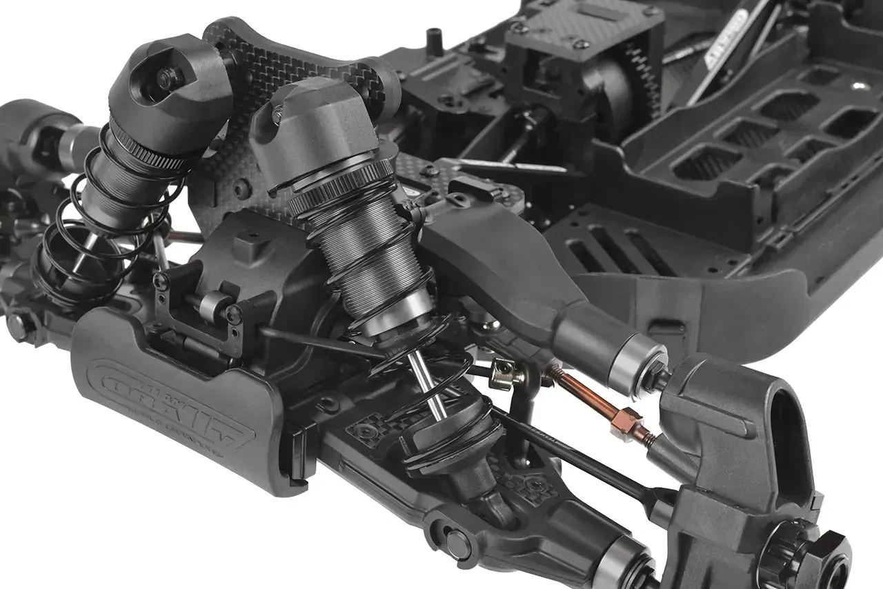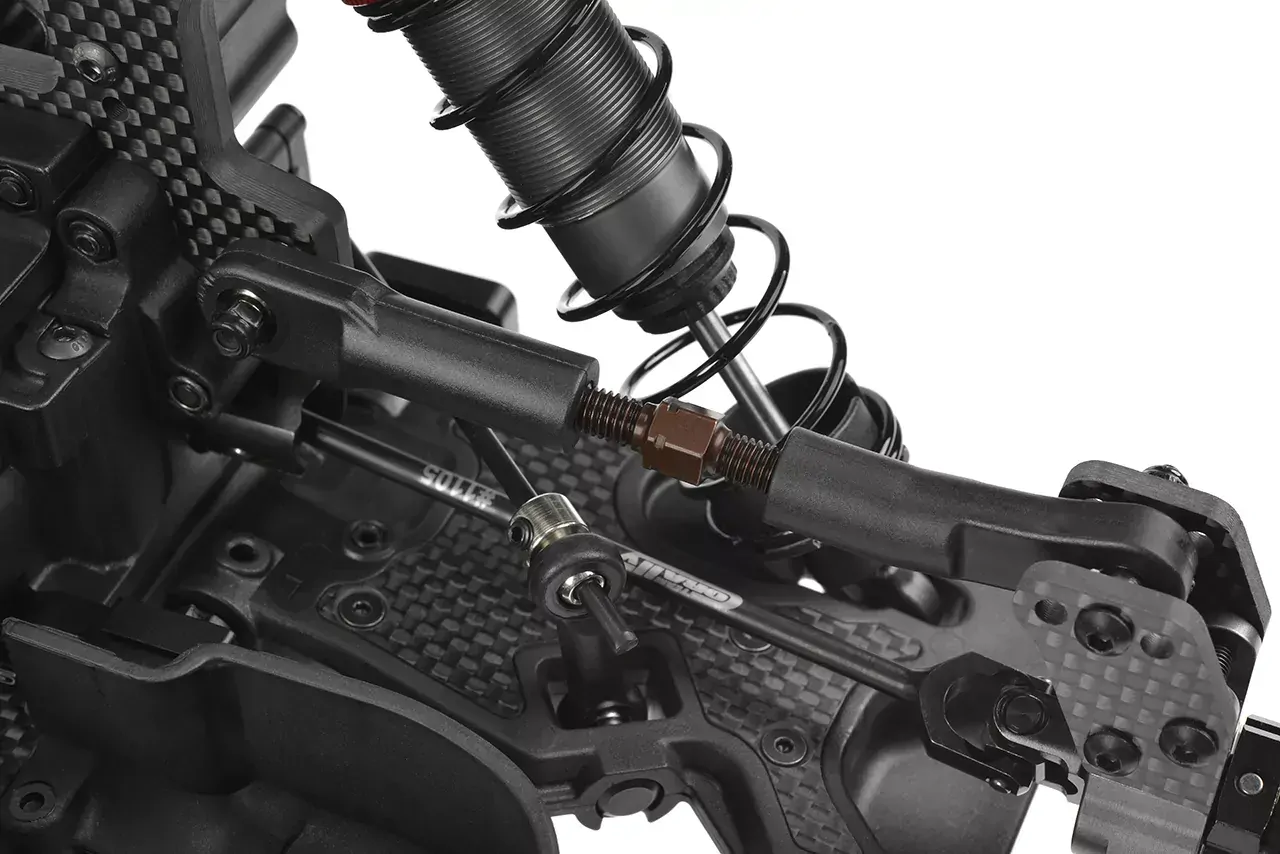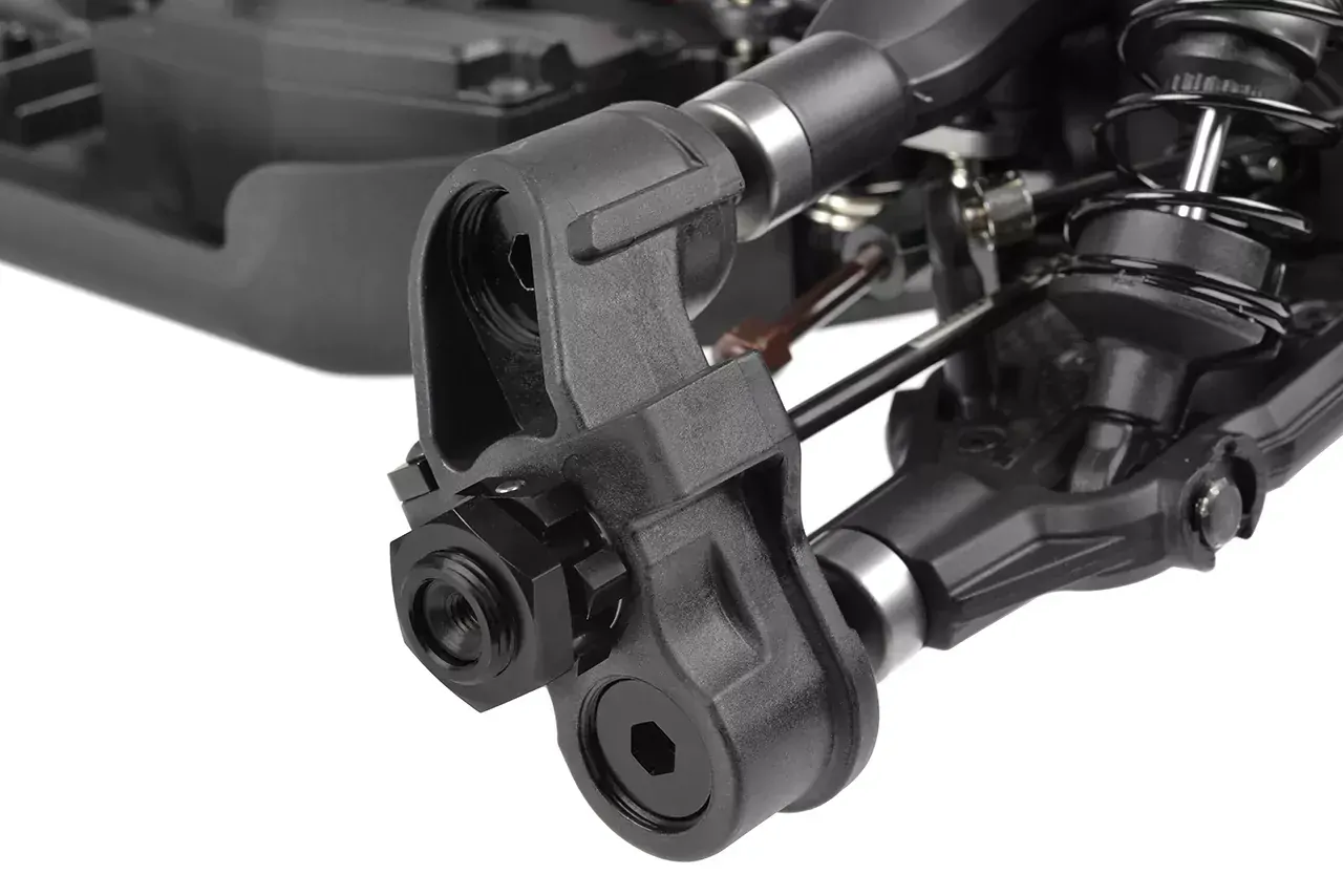 Suspension Arms: Aerodynamic upper arms with integrated carbon stiffeners, dual shock mounting positions, and set screws for fine-tuning make the suspension incredibly responsive and customizable.