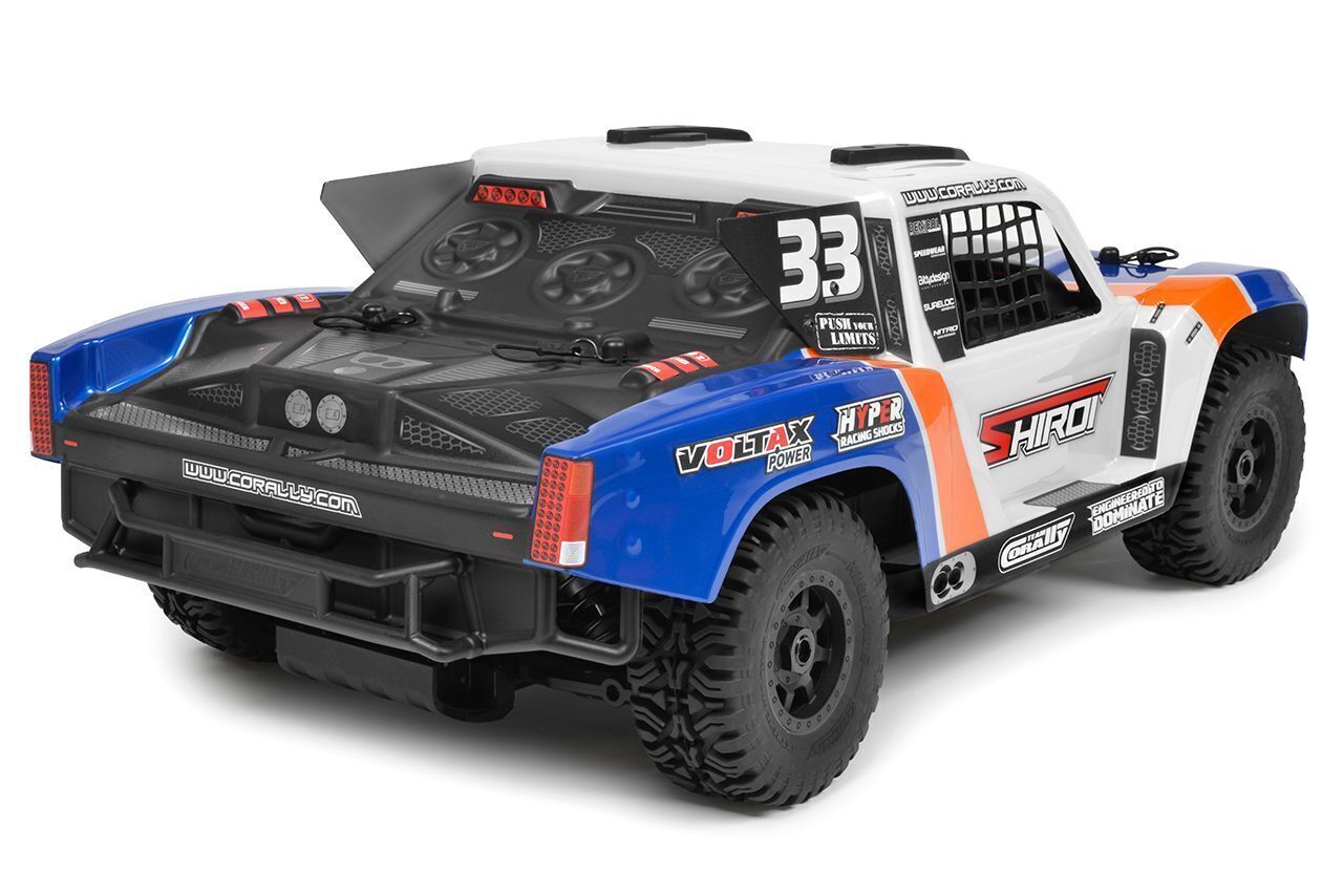 Step into the world of Short Course Trucks with the Team Corally SHIROI XP 6S, a true 1/8 scale, 6S-powered machine. SHIROI captures the stance and style of full-size desert racers while delivering the rugged strength and handling demanded by hobbyists who expect more from their RC driving experience.