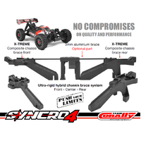 Team Corally doesn't pull any punches when it comes to the Syncro4's suspension system. Leveraging the well-known and bash-tested suspension arms from previous models like the Radix6 and Sketer, along with robust steering blocks and rear hubs, the Syncro4 ensures top-tier performance on any terrain. With the inclusion of the familiar 4mm CNC machined arm holders from the Spark XB6 and precision-engineered links (steering, servo, and rear upper arms), the Syncro4 maintains its commitment to durability and unparalleled performance. Even with the introduction of new plastic shocks and towers, Team Corally stands firm in delivering a suspension system that doesn't compromise on quality, durability, or performance.