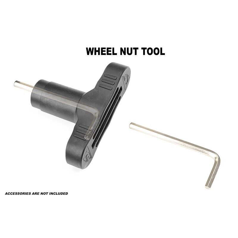 Install, adjust, or remove 5mm suspension pivot balls using the 5mm allen key held by the molded wheel nut tool