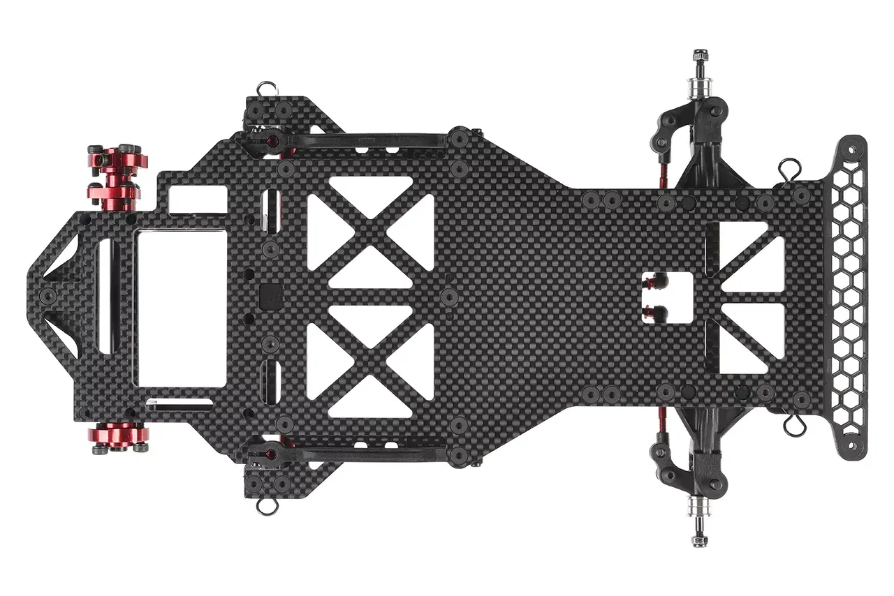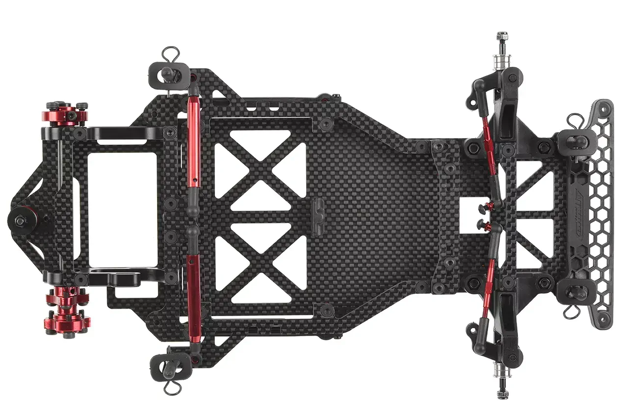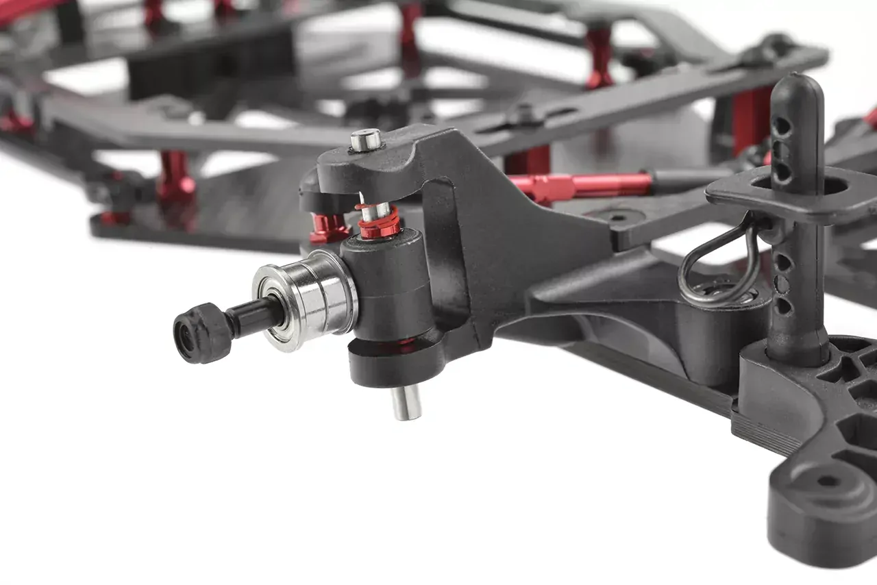 - Optimized Front Suspension: Solid suspension arms keep camber fixed at 0.5° and caster at 6°, proven to deliver excellent corner entry and exit characteristics. A carbon plate on top adds rigidity, and it can be removed to introduce extra flex when needed.