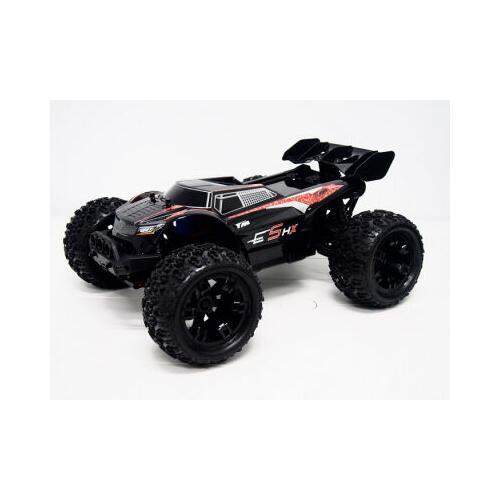 The E5 HX is currently the fastest and strongest 1:10 scale Racing Monster on the market. The front bumper is also equipped with three white and two red bright LEDs. The Team Magic E5 HX includes a strong, well-shaped pick-up Racing Monster polycarbonate body to protect the internal components. Durable 14mm wheel hexes help handle the high power transfer towards the high-traction compound K-Factory tires which offer additional performance and fast acceleration on every surface. We also added an adjustable and durable ball-raced wheelie bar on the rear to give highest control and support wheelie's. You'll like it!