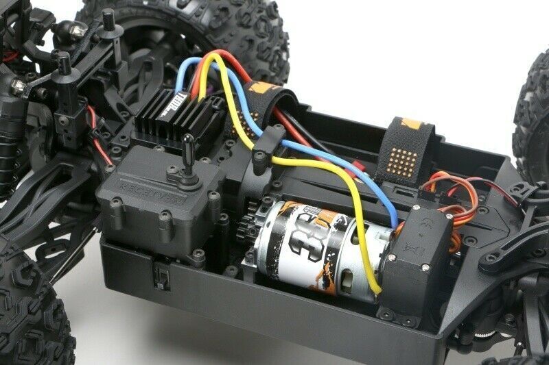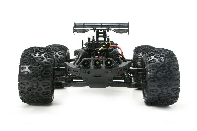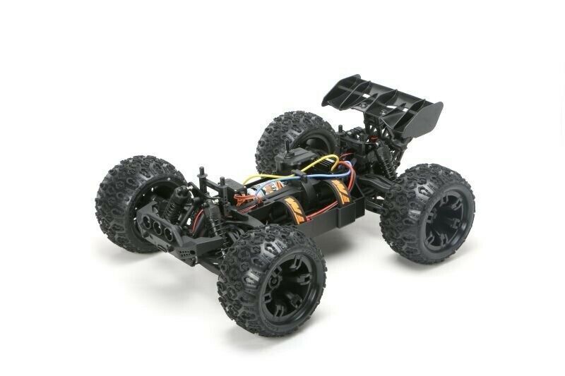 Car - 1/10 racing monster electric - 4wd - rtr - brushed 2s/3s - waterproof - team magic e5 hx - black/red to create the team magic e5 hx, have started with the idea to construct a 1:8 racing monster small. We have combined the durability and power of a 1:8 racing monster with the agility and acceleration and fast handling of a 1:10 model. We have also added some new features. The e5 hx is currently the fastest and strongest 1:10 racing monster on the market. The front bumper is equipped with three white and two red bright leds. The team magic e5 hx includes a beautifully shaped racing monster body made of durable polycarbonate lexan to protect the internal components. Rugged 14mm wheel adapters help ensure high power transmission to the k-factory tyres for better handling and faster acceleration on all surfaces. We've also added an adjustable, sturdy wheelie bar to the rear of the model. For better wheelie control, the team magic e5 hx features a ball-bearing wheelie wheel. You'll love it! all plastic components are made of high quality fibre reinforced material which gives the team magic e5 hx not only a higher stability but also less tweak (twisting) and thus a better geometry and transmission efficiency. The front and rear swingarms are symmetrical, which reduces the cost of spare parts. Drive shaft bones are always lost and have high wear - this is the reason why the team magic e5 hx is equipped with quality cvd drive shafts at the front. The team magic e5 hx has adjustable right-left threads and an adjustable servo saver right out of the box. In order to absorb large jumps and unevenness better, we decided to use large-volume oil pressure shock absorbers and a long suspension. See the rear end - push it down!. Here there is an active toe-in which provides more control when landing and accelerating. The team magic e5 hx chassis has a multi-connector plug which gives the possibility to change the electronics faster. Less cable clutter in the model thanks to cable tunnel. Your 2-3s batteries are fastened by a quick-change battery holder. We have selected the best electronic components currently available on the market! a 15kg strong, waterproof, metal driven savã¶x servo provides highest precision in every situation. See - the waterproof receiver is in the waterproof receiver box. The controller thor 1040 and the motor thor 570 are high performance components, which can be operated with powerful 2-3s lipo batteries. To tame this power and make the e5 hx even more robust, we have installed a 1:8 steel gearbox module 1. 0 with a 5mm motor shaft. Drive a rocket - choose the team magic e5 hx! technical data: - length 428mm - width 343mm - wheelbase 270mm - weight 2. 7kg - tyre dimension 5. 1x3. 25x2. 75 - waterproof controller thor 1040, 2-3s lipo - motor 570 brushed - toothing m1. 0 steel gear unit - gearbox medium shaft 4wd - big bore oil pressure shock absorber - dirt & water filter - transmitter hard 2. 4ghz - 15kg waterproof savox servo with metal gear - 4 leds pre-installed - easy access distribution board - quick-change holder for rechargeable batteries - adjustable wheelie bar (support wheel) - k-factory tyres - cvd cardan shafts front made of hardened steel - top speed 35km/h @ 7,2-7,4v / 45 km/h @ 11,1 v (tm510005r)