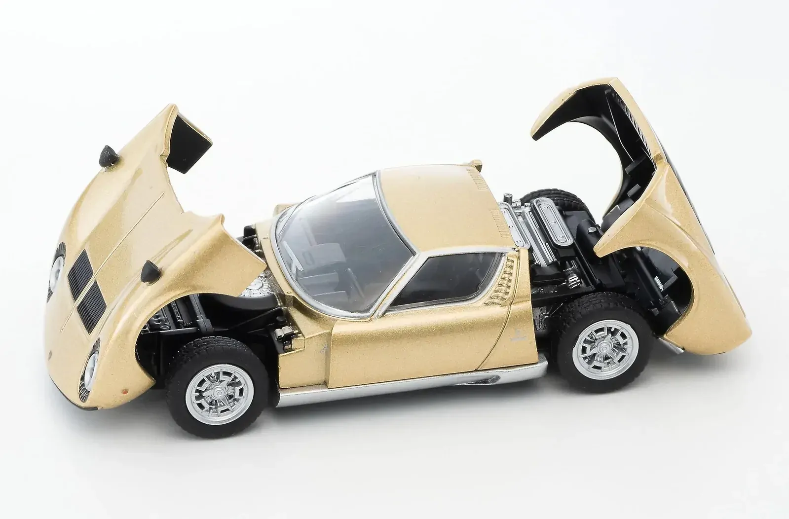 A 1/64 models of the real-life vehicle, manufactured by lamborghini in the 1970's. Its front and rear cowl can be opened