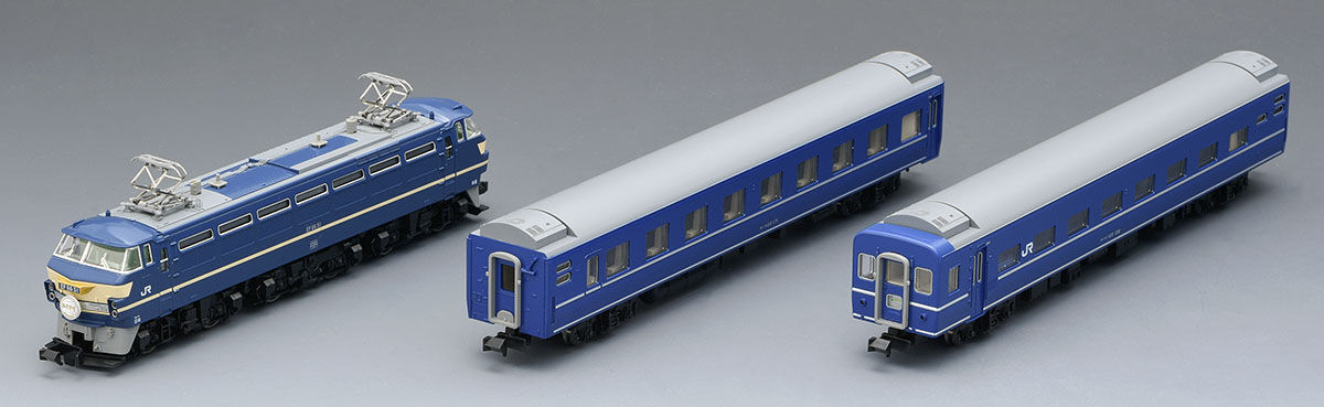 The EF66 type is a locomotive capable of towing a 1000t class high-speed freight train with a maximum speed of 100km/h, and 55 locomotives were manufactured from 1968. From 1985, it was selected as a towing machine for the Blue Train on the Tokaido Main Line, replacing the EF65 type 1000. The 24 series 25 type 100 is a limited express sleeper passenger car that appeared in 1976.