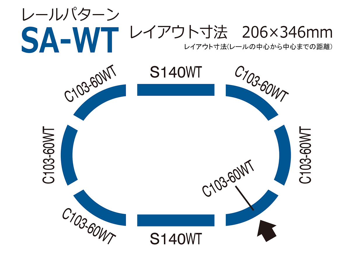 - A set that allows you to create an endless layout using the wide tram super mini curve rail C103-WT