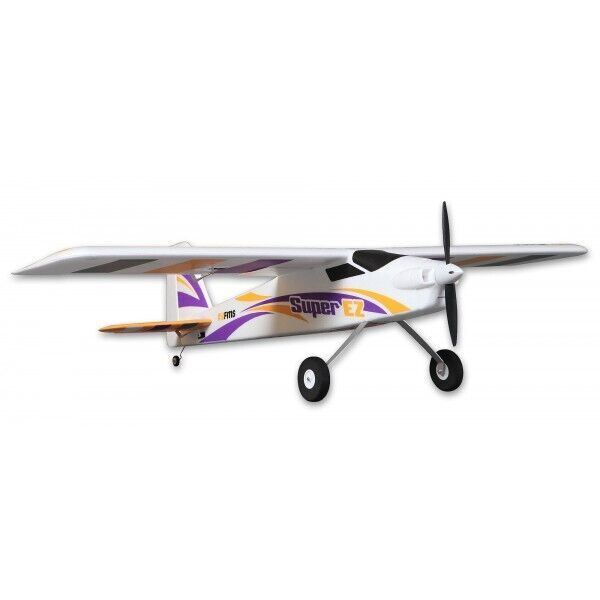 Using a large, high-winged design constructed out of lightweight epo foam, the superez has an ultra-low wing loading and stable flight characteristics- giving beginner pilots great handling even at slow speeds. An improved brushless power system and propeller gives the aircraft ample power while still maintaining 10-15 minute flight times. A high strength, lightweight metal landing gear set absorbs even the hardest landings