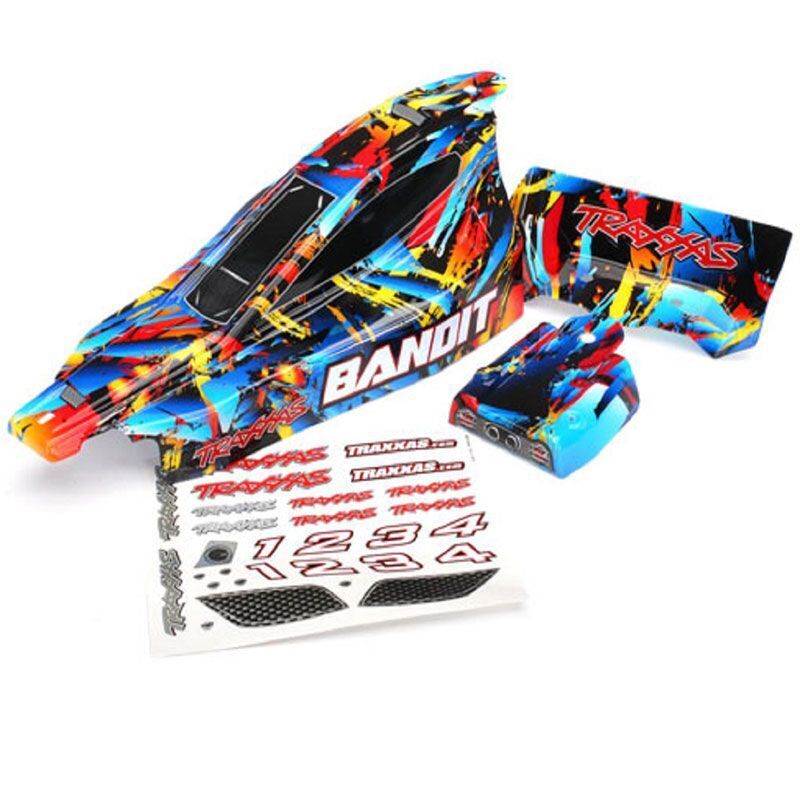 is it time to upgrade your bandit with an all-new look? These tough polycarbonate bodies feature the hottest prographixpaint with pre-applied decals. Theres no need to trim the body or drill mounting holes because traxxas pre-painted bodies come ready to mount right out of the bag.