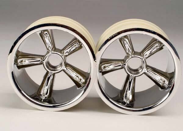 Lightweight and durable 2.2" TRX ® Pro-Star front wheels feature a chrome-less gluing surface for secure tire bonding with an awesome mirror-like finish.