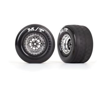 Traxxas t&w assem (weld chrome, black wheels, mickey thompson et drag slicks) (rear) (2)