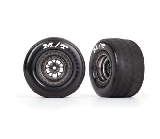 Traxxas t&w, assem (weld satin black chrome whls, mickey thompson et drag slicks) (rear) (2