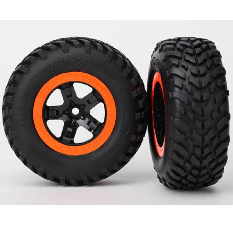 Traxxas tyre & wheel assy, glued (sct, black, orange 4wd)