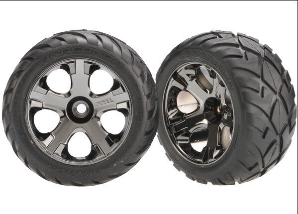 TRAXXAS Tires AND; wheels, assembled, glued (All-Star black chrome wheels, Anaconda ® tires, foam inserts) (nitro front) (1 left, 1 right) 38-3777A
