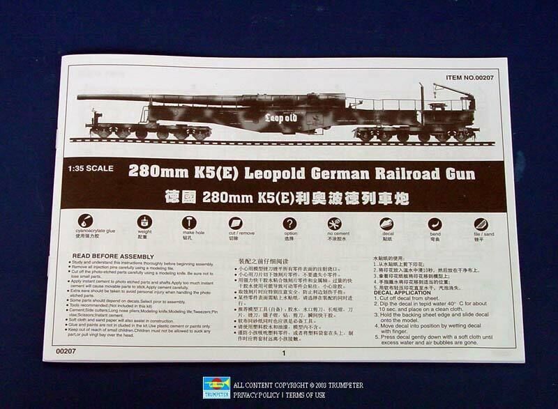 Trumpeter 1/35 280mm K5 E Leopold German Rail Road Gun Plastic Model Kit [00207]