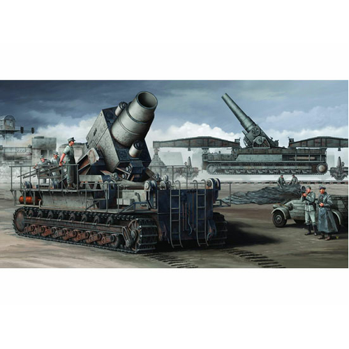 More Features : Full detailed interior torsion bar, separated suspension, folding side platform, optional long exhaust pipes, elevating main gun, optional 60cm and 54 cm barrel with rifling and shells, also include railway.