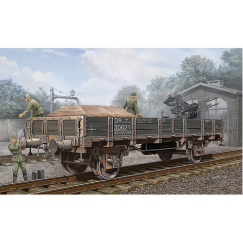 The Deutche Reichsbahn was pushed into service when the German Army began to move mass amounts of troops and machinery.The Light Cargo(Leichter Feldbahnwagen) was used to carry anything and everything including light armor.Half tracks,soft skin vehicles and light armor like the marter III were seen on these cars.They were used throughout the span of the war.These cars were often sand bagged and used with AA units for Air cover.