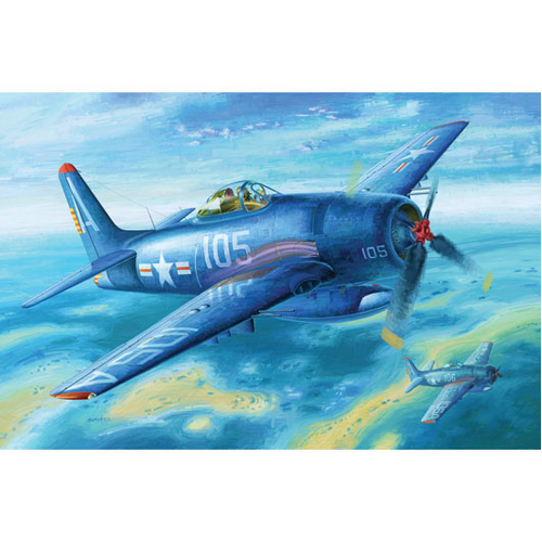 The F8F Bearcat was the speediest prop-driven fighter that Grumman ever produced, but it arrived too late to see combat in WWII. It was intended as an interceptor fighter, operating from carriers. In modern vernacular, it might have been called the Hellcat Lite"; The F8F featured all-metal construction, a cantilever low-wing monoplane design, folding wings for carrier operations, self-sealing fuel tanks, four .50 caliber machine guns and power by Pratt & Whitney R-2800 radial engine. The US Navy order two prototypes, XF8F-1. in November, 1943. First flown nine months later, the Bearcat prototype outperformed its heavier predecessor, notably with a thirty percent better climb rate. Grumman then delivered the first production model F8F-1.in February, 1945, only six months after first flight! The Navy's order totaled 2,033 airplanes, and Grumman contracted with General Motors to build the Bearcat under license, But only a few Bearcats had been delivered to the Navy when the end of the war halted production. Grumman has been build a total of 1,266 Bearcats of all type. Of which 765 F8F-1's 100 F8F-1B'. At least 24 US Navy squadrons flew the Bearcat, some until as late as 1952, after which some were sold to the French Air force for combat operations in Vietnam. Another 129 Bearcats were sold to the Thai Air Force.: