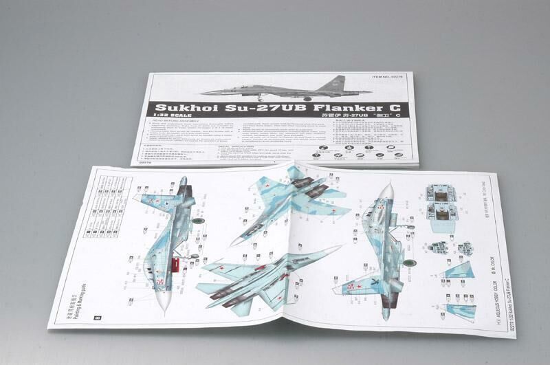 This kit is basically the same as the kit-TR2224 Su-27 single seat with 5 new tooled moulds, include upper fuselage sprue, clear canopy sprue"
