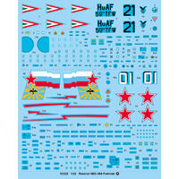:The Mig-29A(Izdeliye 9.12)can be armed with many kinds of weapons including the R-27R semi-active radar homing AAM,the R-27R,R-73,R-60 IR-homing AAMs,the internal cannon and a series of bombs or rockets.Besides the weapons,the Mig-29 can carry a 1520-litre centreline drop tank for long-range operations and ferry flights.
